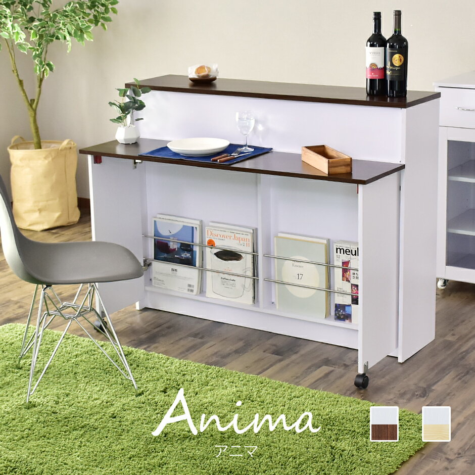 キッチンカウンター 両面収納 カウンターテーブル アイランドキッチン 折り畳みテーブル バーカウンター テーブル 折りたたみ キッチンボード 食卓 食器棚 食器 棚 キッチン収納 台所 北欧 おしゃれ アニマ 送料無料