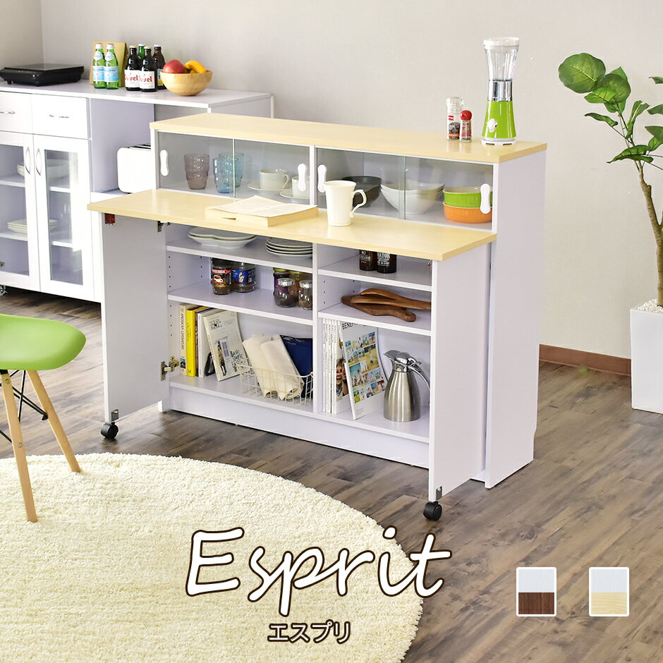 キッチンカウンター カウンターテーブル 幅120 バタフライ テーブル アイランド 対面 キッチン カウンター バーカウンター キッチン収納 食器棚 キッチンラック 台所収納 収納棚 作業台 両面 片面 間仕切り スリム 伸長式 北欧 おしゃれ エスプリ 送料無料