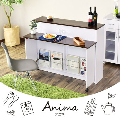 キッチンカウンター 両面収納 カウンターテーブル アイランドキッチン 折り畳みテーブル バーカウンター テーブル 折りたたみ キッチンボード 食卓 食器棚 食器 棚 キッチン収納 台所 北欧 おしゃれ アニマ 送料無料